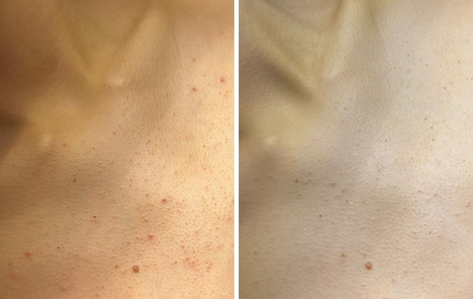 → Ovi eksfolijansi zajedno otpuštaju nakupljene odumrle stanice, čiste začepljene folikule, omekšavaju hrapave kvržice i ublažavaju diskoloracije. Rezultat je glađa, čišća i vidljivo ujednačenija koža.