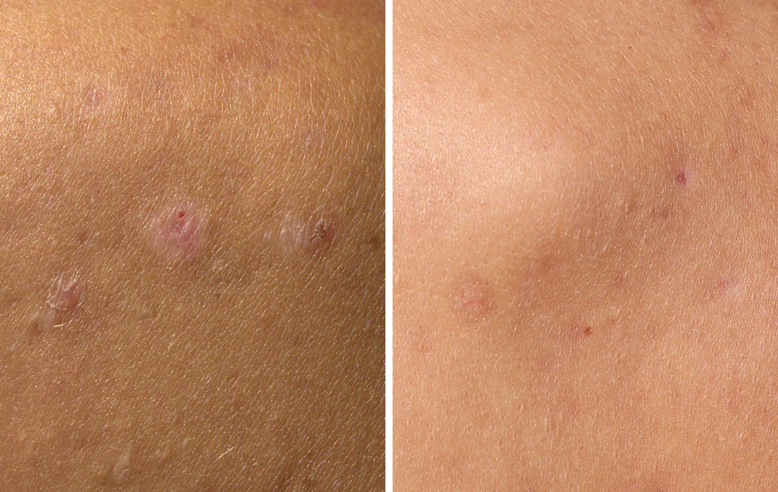 Prištići na tijelu, miteseri, tragovi nakon izbijanja prištića